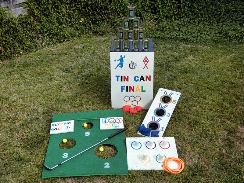 Only the best competes here, throwing bean bags at Tin Cans decorated with medals giving you a taste of what the victor will earn. The Olympic-theme painted plywood board is 65cm high x 46cm wide and leans again a folding table which is also 65cm high. The Set also comes with 10 x Tin Cans and is suitable indoors and outdoors.